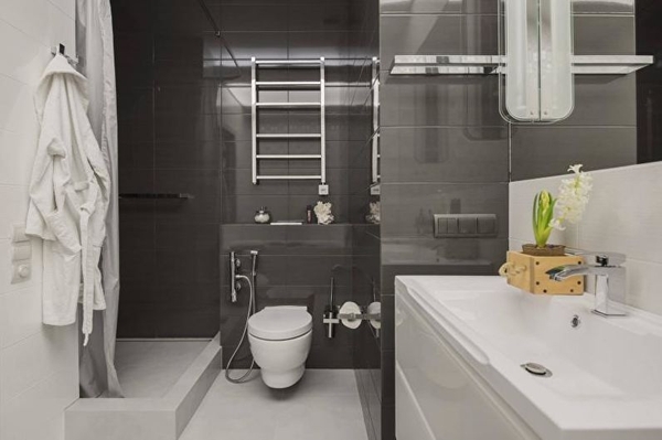 Như trong bất kỳ trường hợp nào khác với một căn phòng nhỏ, bạn nên đặt cược vào màu sáng, ánh sáng phong phú tốt, sử dụng các thuộc tính cần thiết nhất của đồ nội thất và trang trí, cũng như sử dụng gương lớn, bề mặt bóng và kính. Những lời khuyên này có vẻ tầm thường, nhưng nhiều người không muốn làm theo chúng, và kết quả là, họ xả rác vào không gian bị bỏ trống bởi vòi hoa sen. Hãy nhớ rằng sự tối giản trong một phòng tắm quá khổ là giải pháp hợp lý và thẩm mỹ nhất.